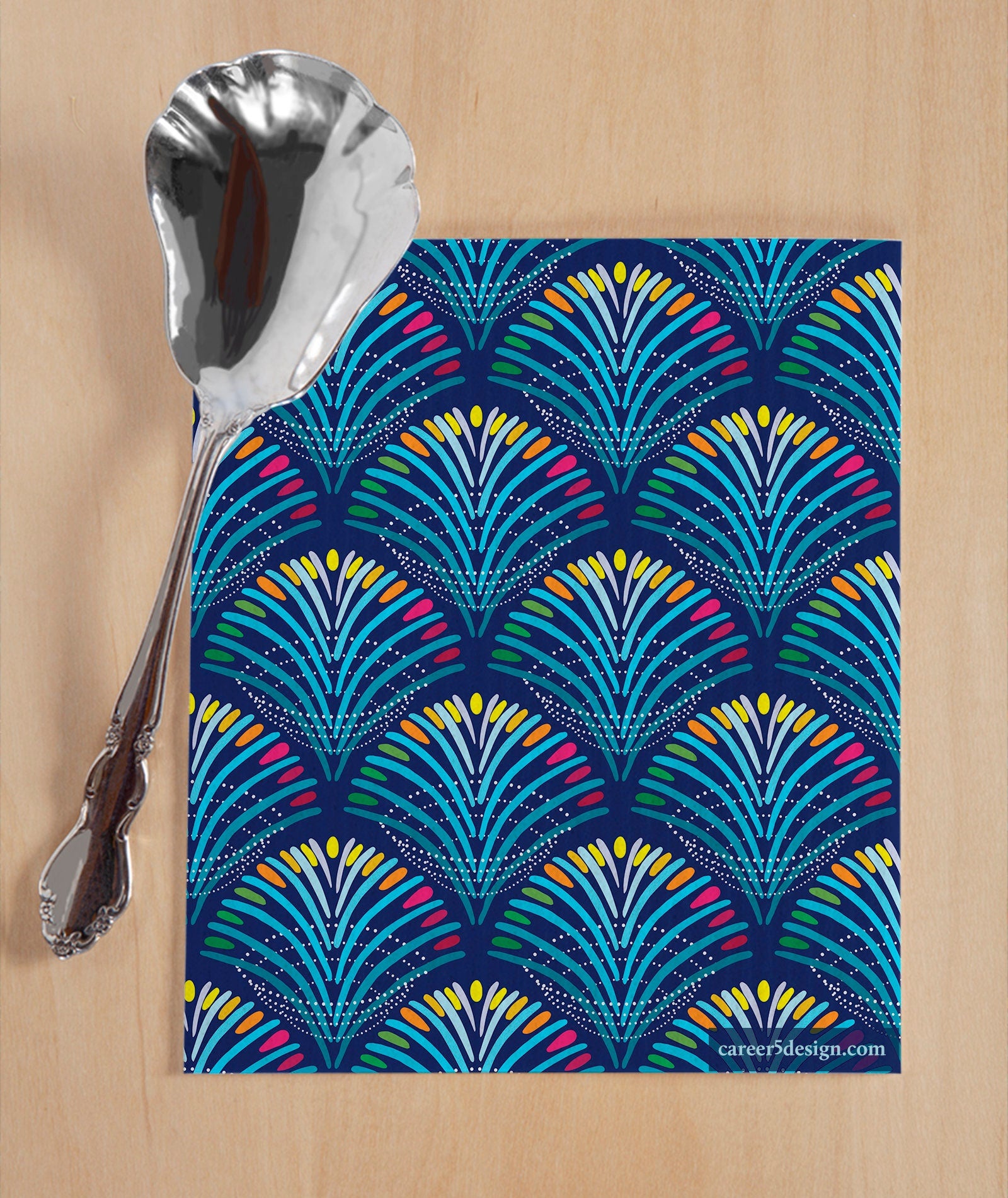 This drawing is a very festive way to celebrate autumn. This reminds me of the autumn forest of the Northwoods with its blue spruce branches and maple leaves coming through. This is one of my Four Seasons series. It is a Swedish dish cloth! Doing dishes, dusting, and other house cleaning tasks are more fun when you have a beautiful cloth in your hand.