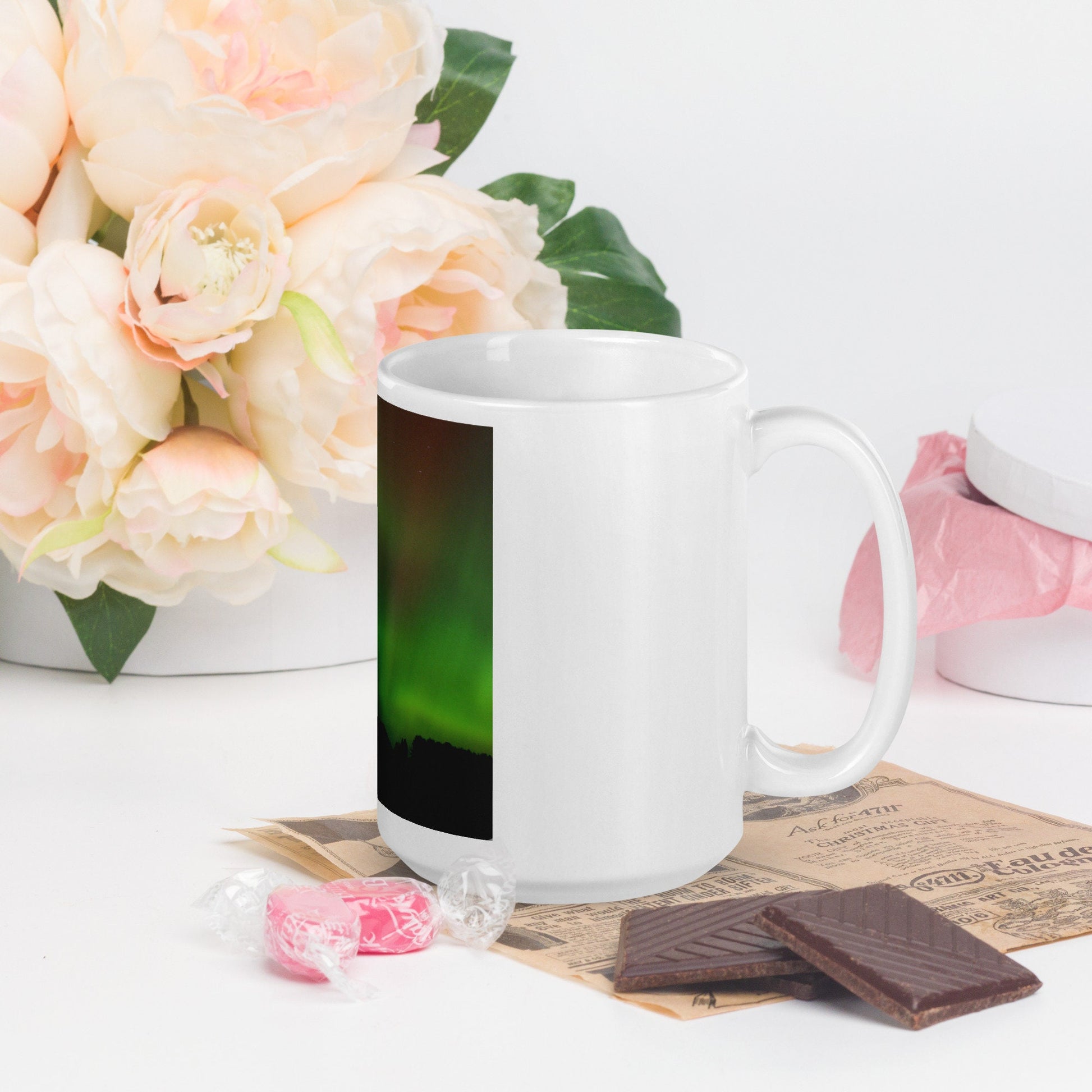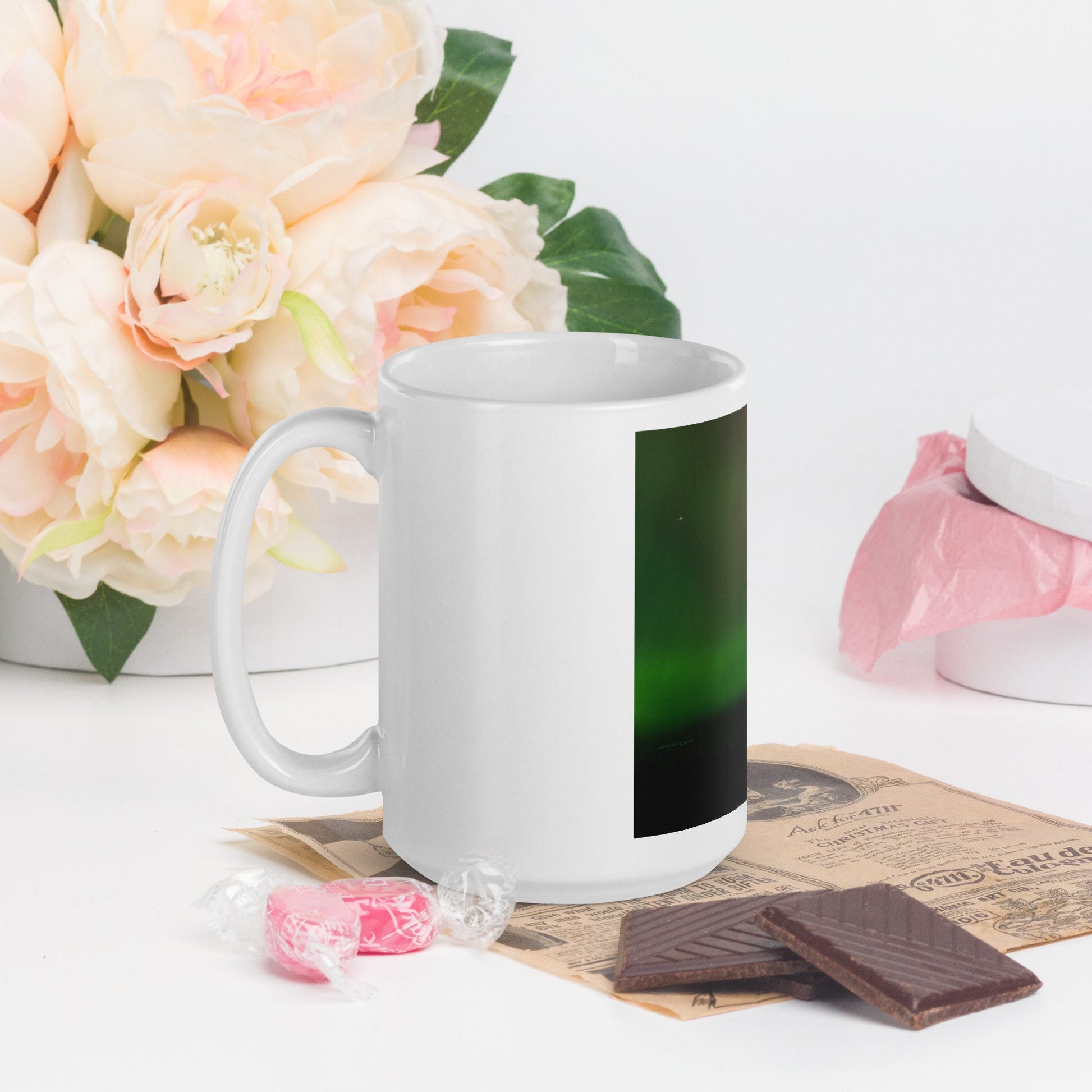 Have you seen them? I took this photo of northern lights several years ago while living in central Wisconsin. It's rare to see them so far south, so this was a very special occasion. I drove out into the country to witness this sighting of the aurora borealis. The colors were so vivid in the photos I took! This mug brings back memories of a very special night. What will you or receivers of your gifts think when this mug arrives?